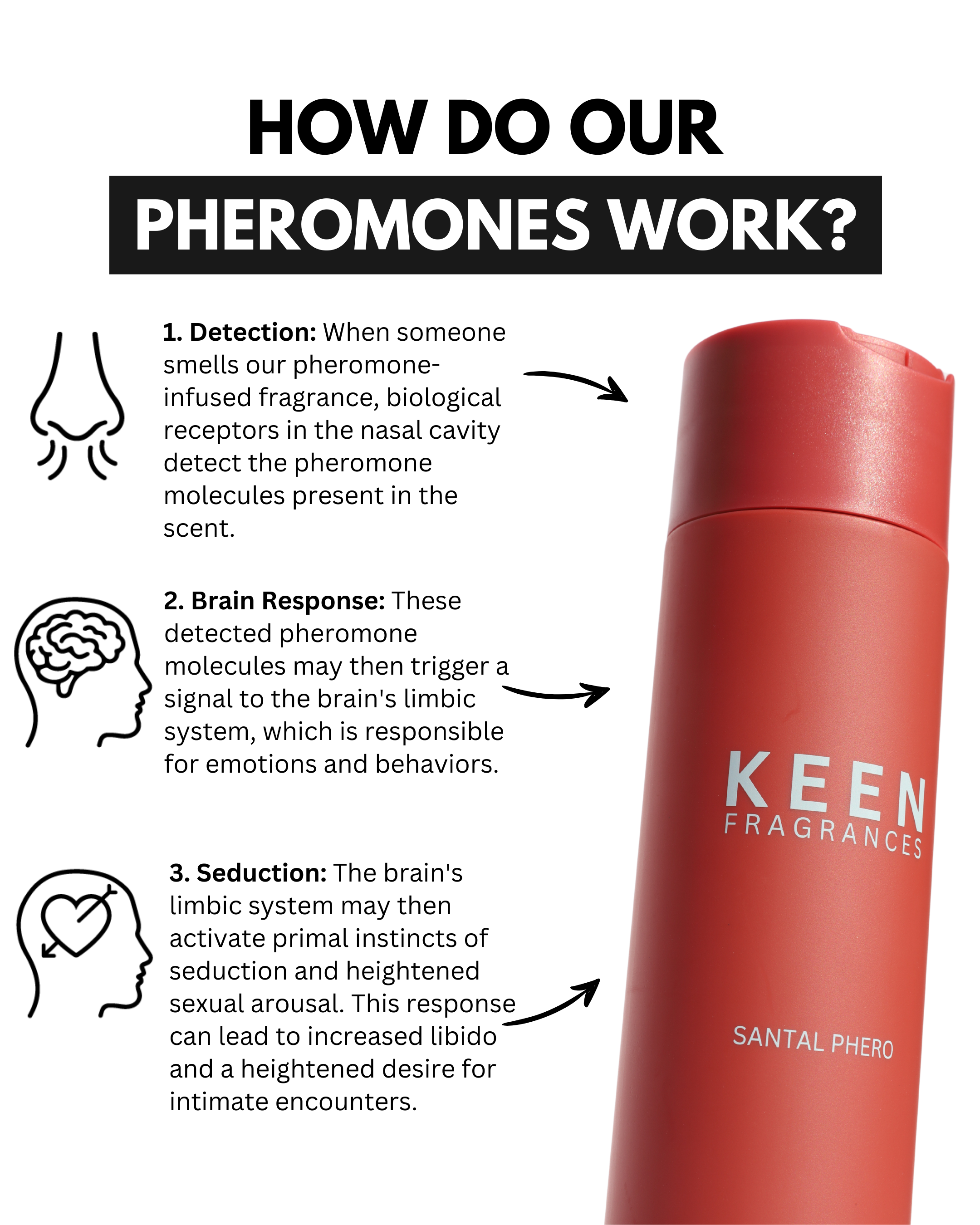 Pheromones are chemical substances produced and released in humans, that can affect the behavior or physiology of others. When it comes to attraction, pheromones play a significant role in sexual attraction and mating behaviors. Here's how they work: